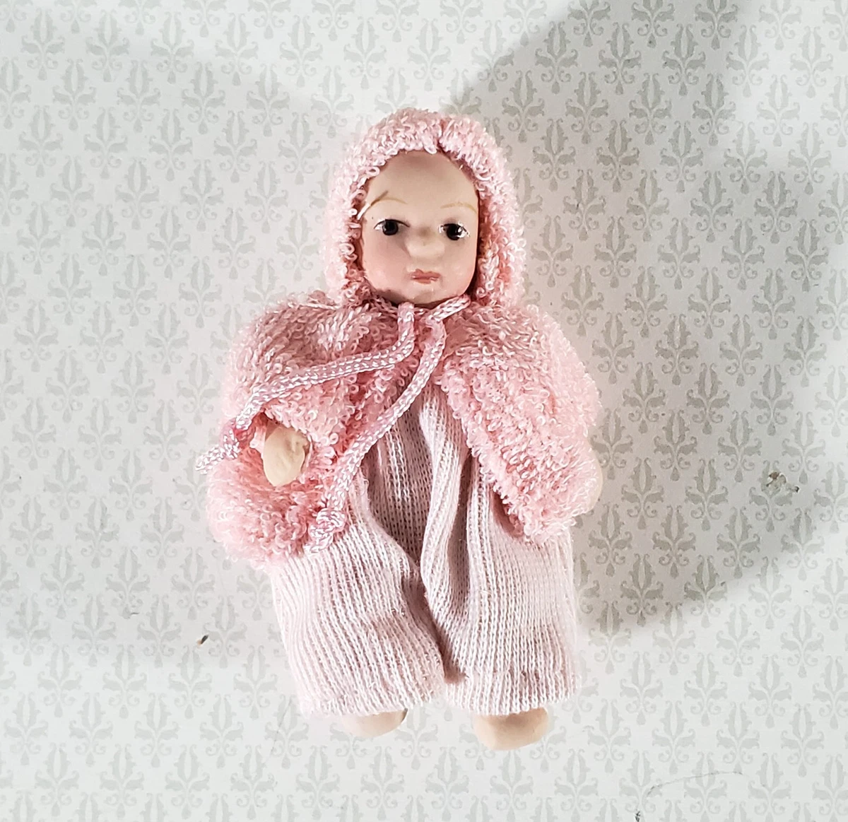 Dollhouse Baby Doll Porcelain Moveable 1 12 Scale Miniature Pink Sleeper Ebay